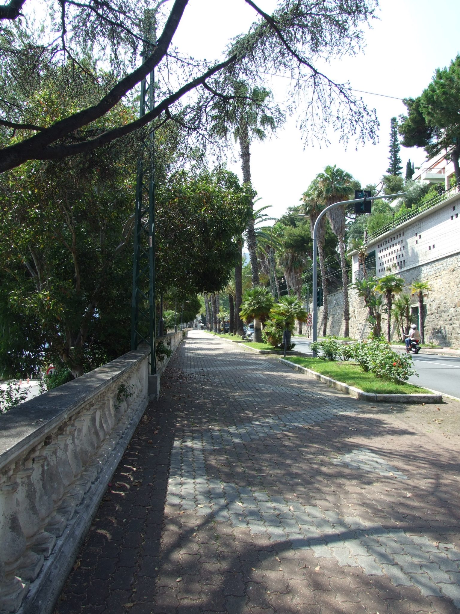 Dopo aver parcheggiato a lato, sulla via Aurelia, che ci conduce da San Remo a Ventimiglia, percorriamo questa magnifica passeggiata e raggiungiamo la spiaggia dove troviamo negozi e quant’altro.